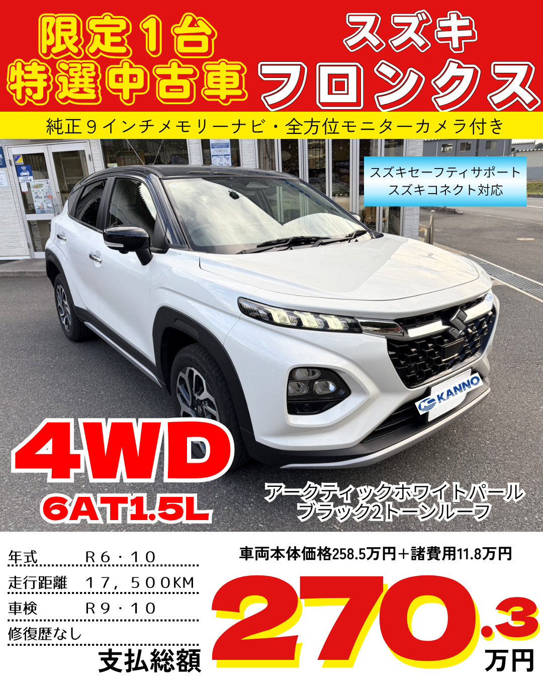 納期に時間がかかる大人気フロンクスの中古車が登場です!